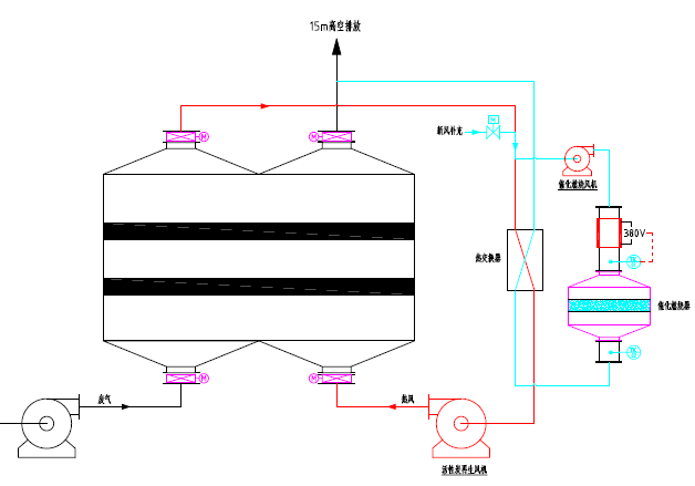 脫臭原理:利用吸附劑的吸附功能使惡臭物質由氣相轉移至固相。適用范圍:適用于處理低濃度,高凈化要求的惡臭氣體。優點:凈化效率很高,可以處理多組分惡臭氣體。缺點:吸附劑費用昂貴,再生較困難,要求待處理的惡臭氣體有較低的溫度和含塵量。